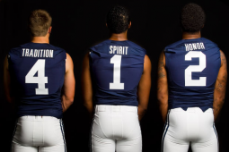 Before the start of the college football season, the head coach of the local university’s football team announced that he had decided to take the football players’ names off of each of their jerseys, not uncommon in college football. However, in place of their names, he proposed having the team’s motto of “Tradition. Spirit. Honor” printed instead.